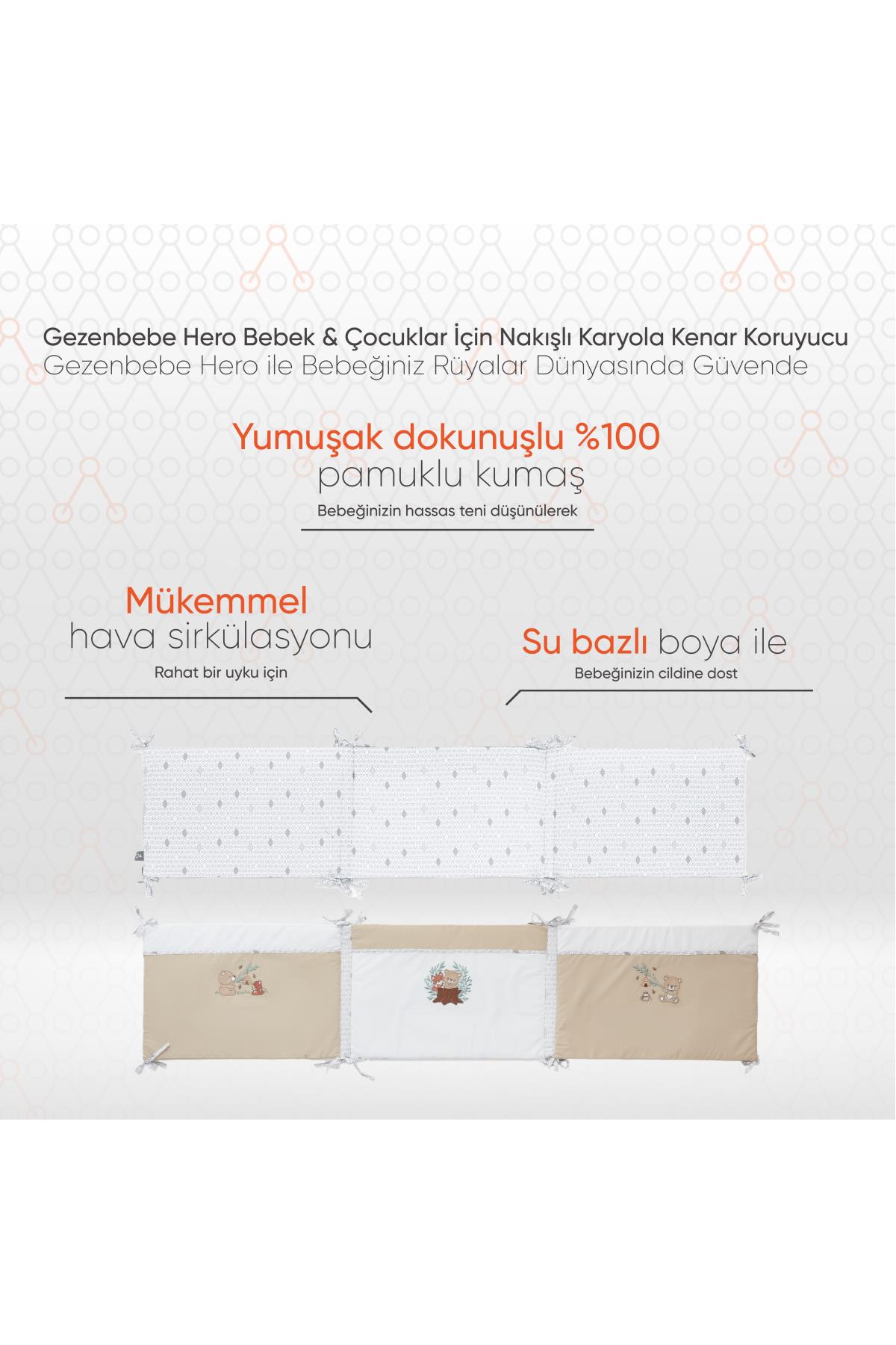 Gezenbebe Hero Bebek ve Çocuklar İçin Nakışlı Karyola Kenar Koruyucu (40X180): Bebeğinizin rüyalarını korurken, karyolasını da şıklıkla sarın: Gezenbebe’nin nakışlı dokunuşuyla.