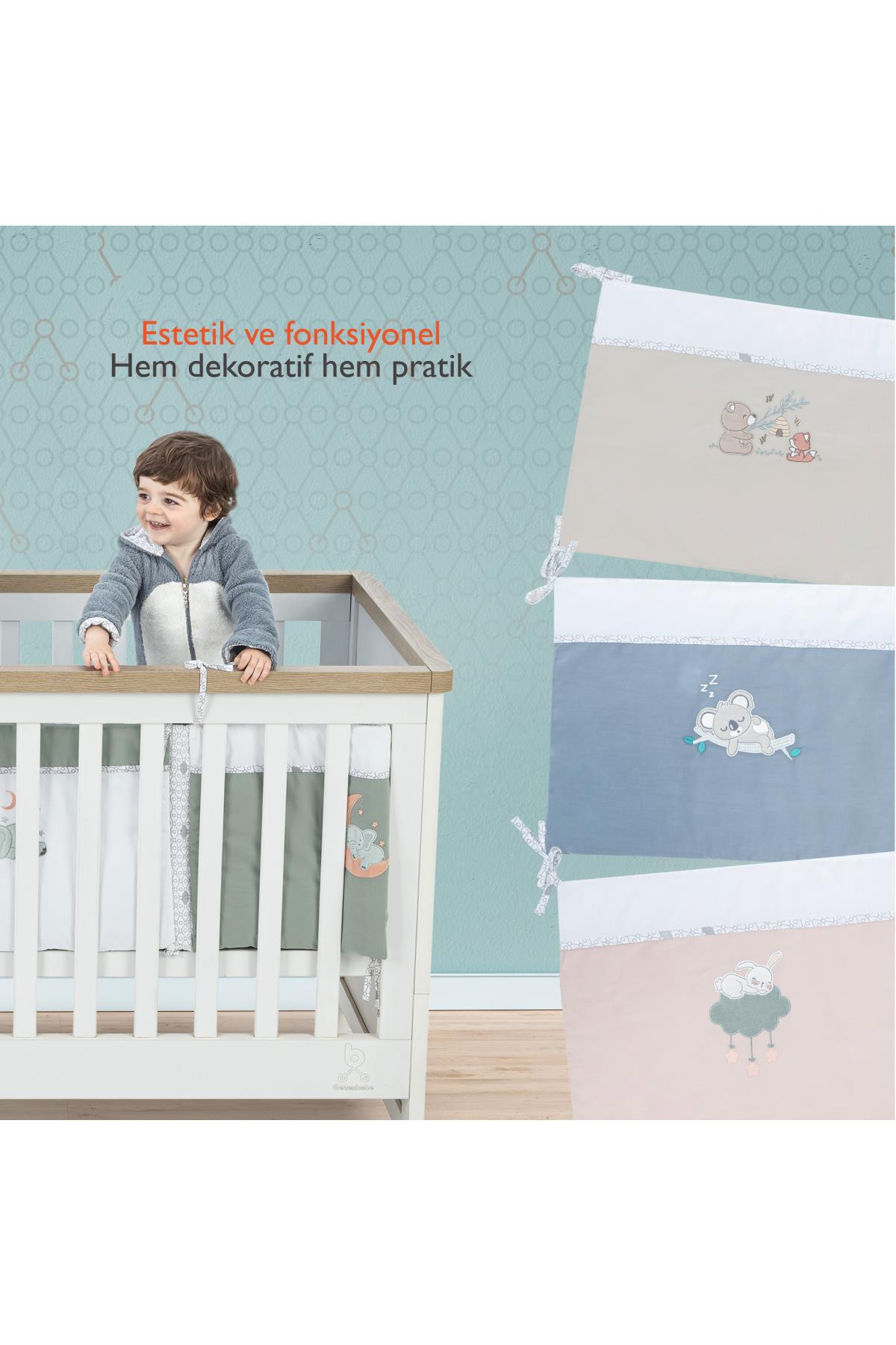 TAM KORUMA: Yumuşak ve dolgun yapısıyla, bebeğinizin karyolanın kenarlarına çarpmasını önler, güvenli bir uyku alanı yaratır.