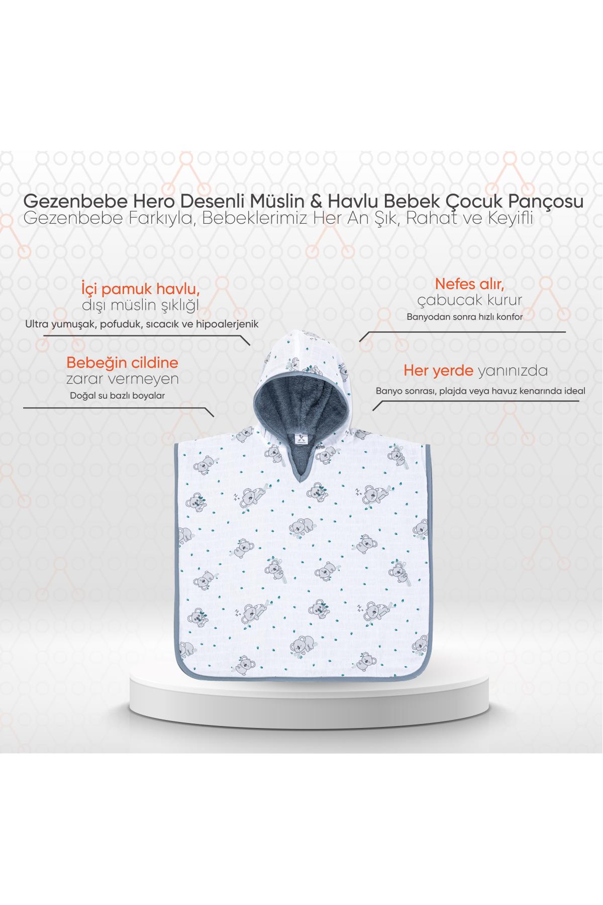 Gezenbebe Hero Desenli Müslin ve Havlu Bebek Çocuk Pançosu: Kahramanların Sıcaklığında, Doğallığın Rahatlığında!