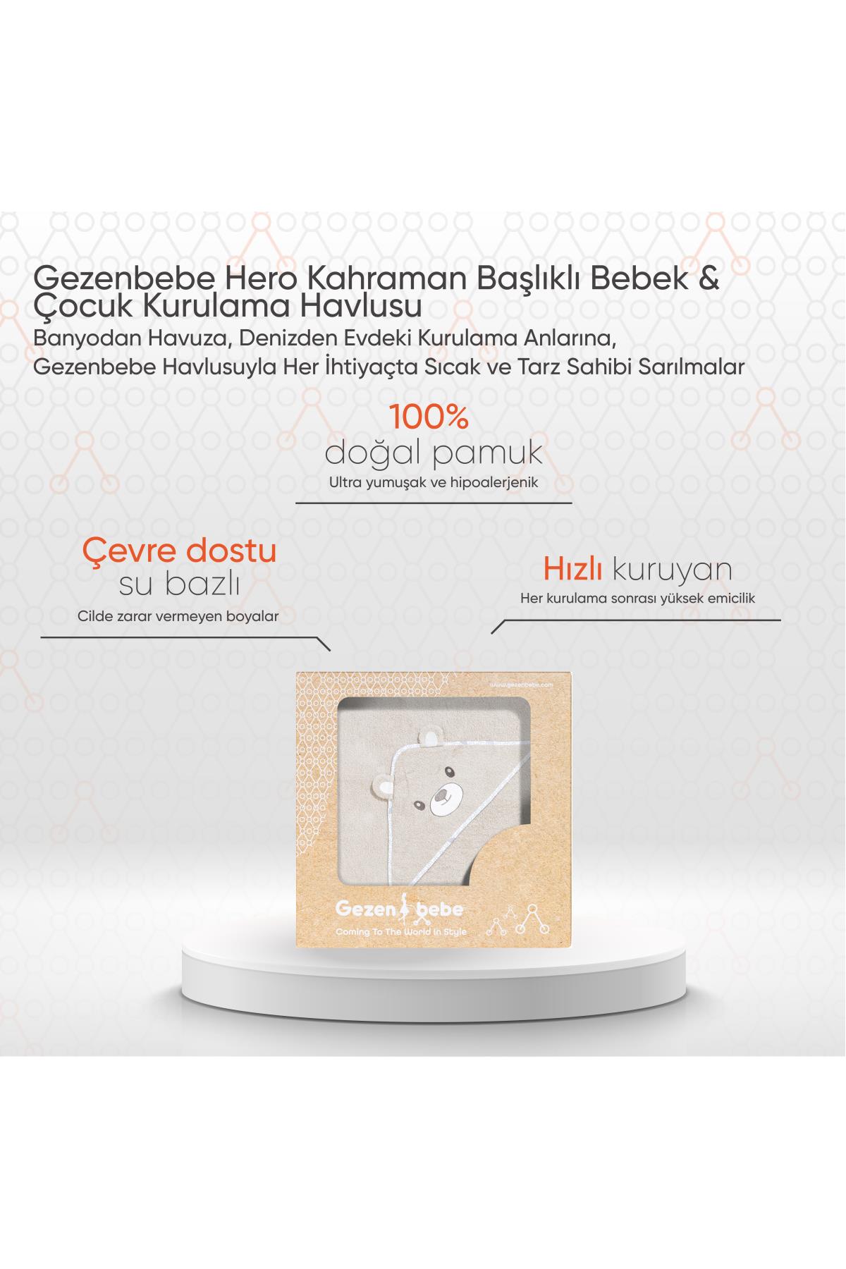 Gezenbebe Hero Kahraman Başlıklı Bebek ve Çocuk Kurulama Havlusu: Kahramanların Sıcak Kucaklaşması, Banyo Sonrası En Sevimli Sarılma!