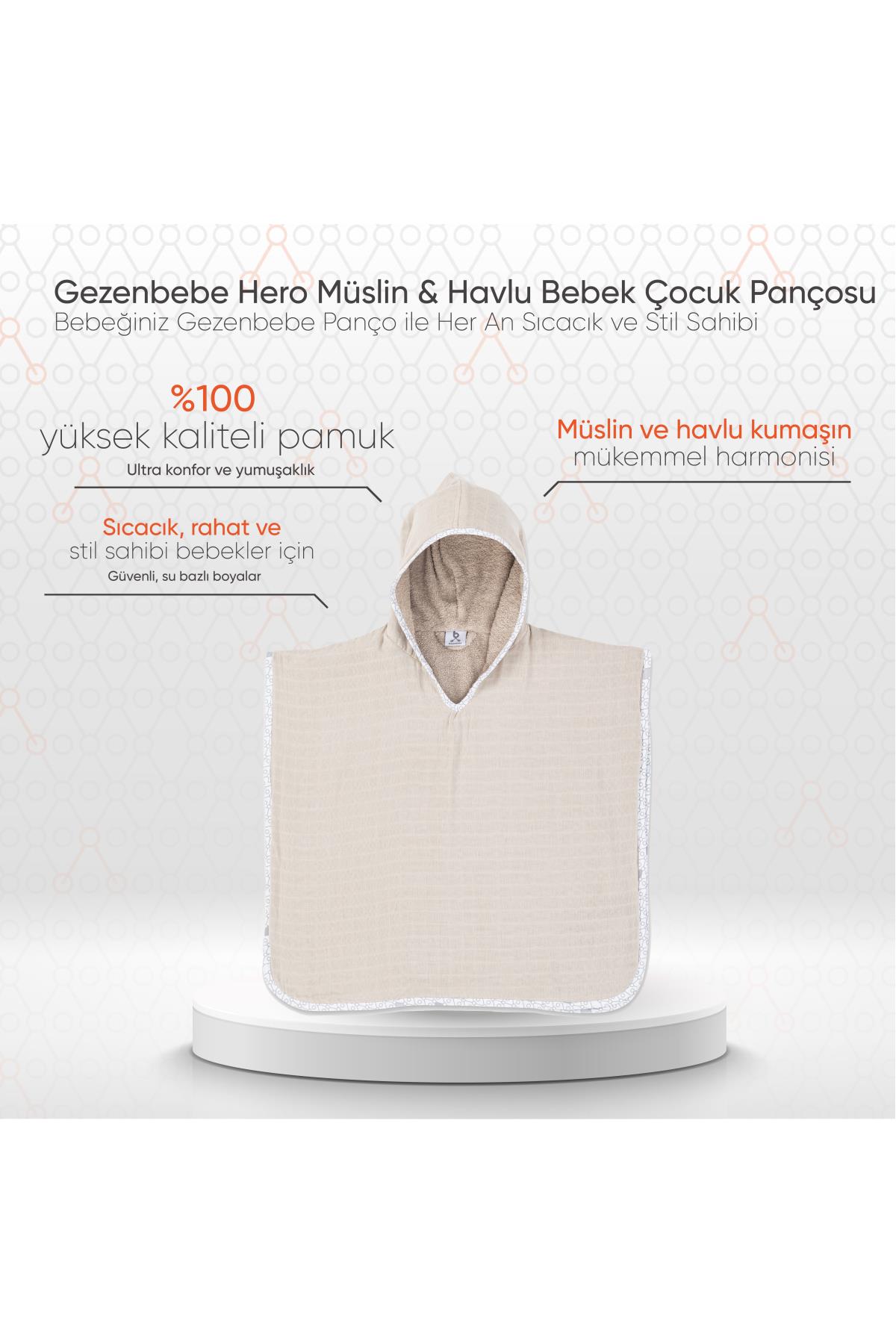 Gezenbebe Hero Müslin ve Havlu Bebek Çocuk Pançosu: Gezenbebe’nin Dokunuşuyla, Saf Konforun Tadını Çıkarın!