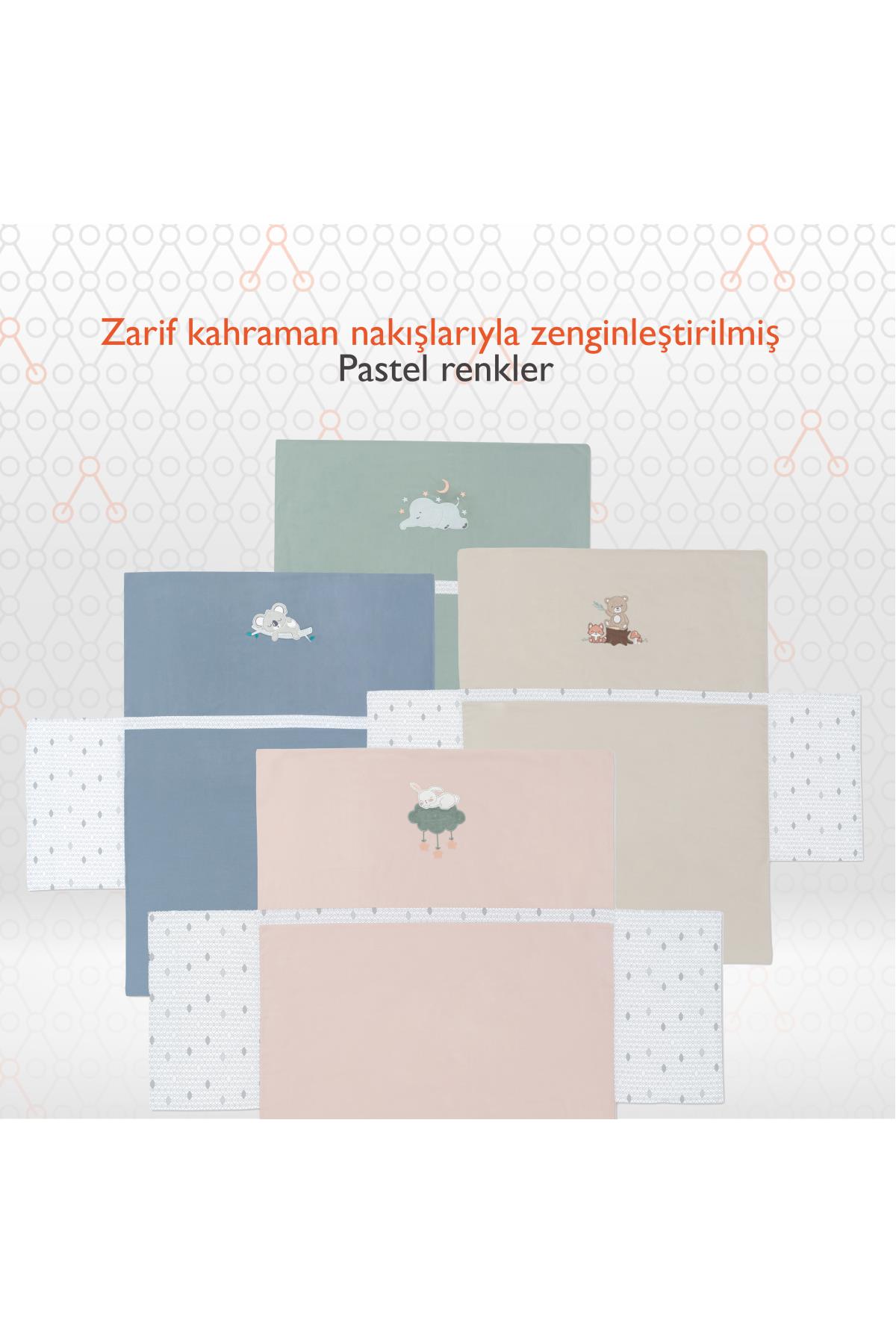 Gezenbebe Hero Nakışlı Bebek ve Çocuk Yorgan Kılıfı, miniklerin uykularını daha renkli ve konforlu kılmak için özenle tasarlandı. Pastel renklerin sakinliği ile ikonik Gezenbebe deseninin birleşimi, bebeğinizin ve çocuğunuzun yatağına sadece şıklık değil, aynı zamanda sevgi dolu bir atmosfer de katacak. Gezenbebe’nin en sevilen kahramanları Fil, Koala, Ayıcık ve Tavşan’ın nakış detayları, yorgan kılıfını özel ve eşsiz kılıyor.